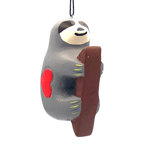 Sloth with Heart Balsa Ornament