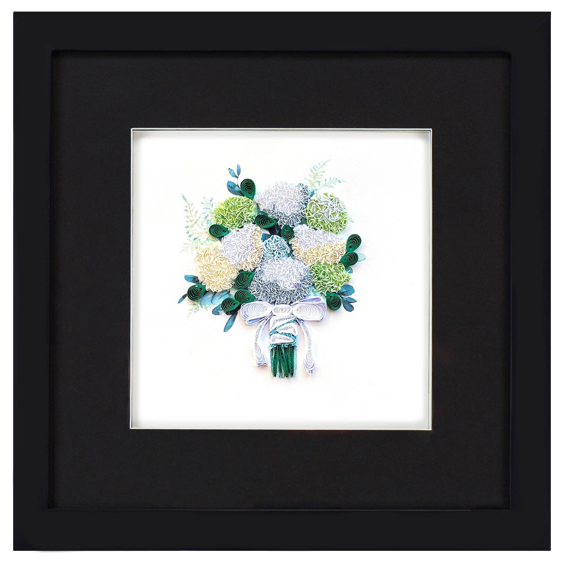 Celebrate love with our exquisite quilled Hydrangea Wedding Bouquet card! This handcrafted masterpiece features delicate quilling that captures the elegance of hydrangeas in full bloom. Perfect for weddings or anniversaries, it adds a touch of artistry and romance to your heartfelt wishes. Make their special day unforgettable with this unique card! 💐💍